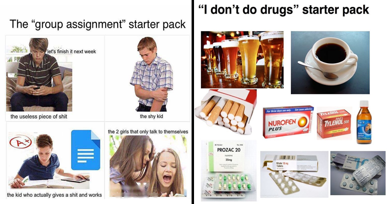 Aug 2 2019 32 starter pack memes that are insanely accurate funny memes that get it and want you to too. Next gallery guy moves in with two chicks and lives to tell the story. 23 hilarious starter pack memes that sum up literally everything about life. 30 funny starter pack memes that are too true 12 starter packs to jump start your day starter pack memes that are on point 27 images 25 starter packs for your new look. And for the most part it s true. See more ideas about starter packs meme starter pack funny starter packs. One could say that starter pack memes stayed relatable was because it can be about anything.