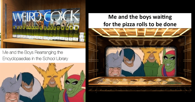 Character exploitable reaction year 1967 origin spider man 1967 tv series tags 60 s spider man rhino cartoon spiderman villain smiling horn costume suit rhinoceros sass tria champagneemojis radtrashking smileguyley me and the boys white science man additional references wikipedia about. While some people might want to forget their more immature moments we opt to revel in them. Old spider man villains 60 s spiderman villains rhino vulture electro and green goblin me and the bois. Me and the boys. It would come into greater use the following year soon becoming. Me and the boys making this meme in the title. The line from the film went overlooked until 2016 when memes involving the sam raimi spider man movies really started to take off according to know your meme the original variant of the still is followed by a fake monologue from norman in which he states his love of urinating on ant hills as some sort of scientific experiment.